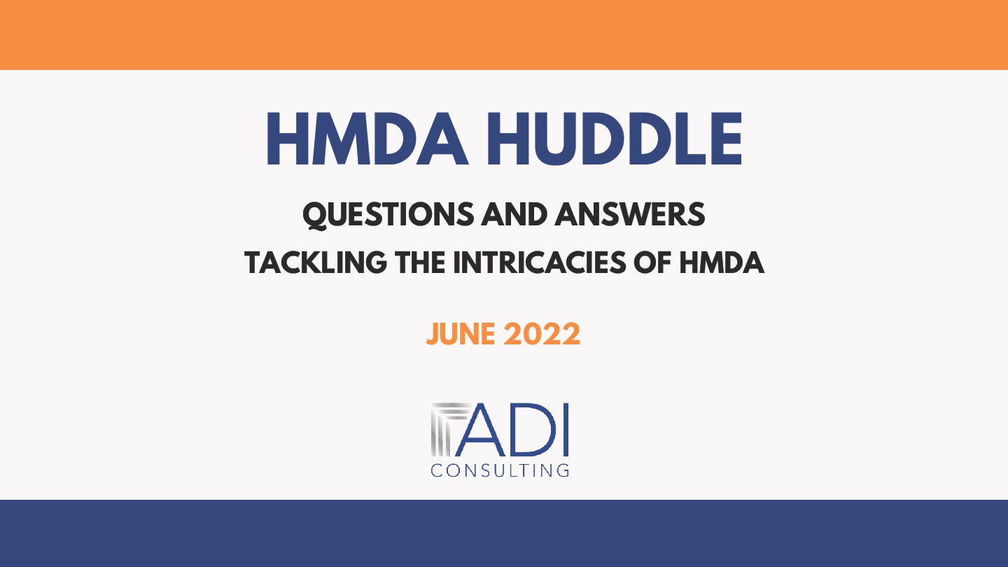 Welcome back to ADI's quarterly HMDA Q&A series, HMDA Huddle. As the end of the second quarter of 2022 approaches, HMDA compliance should remain a consistent focus. Many lenders loosen procedures and fall back into pitfalls of inaccuracy after their previous year's LAR is filed. Don't let that happen to your institution, as it will [...]